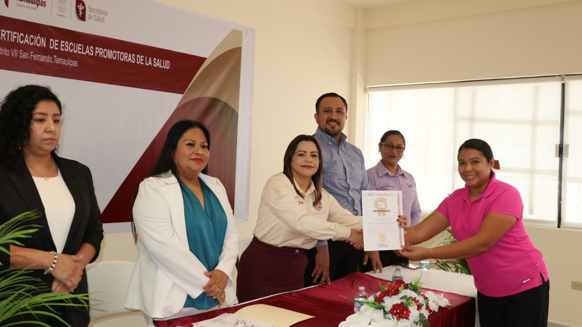 Por su parte la Directora Distrito de Salud para el Bienestar No. VII, Dra. Naxyali García Ramírez; señalo que con el fin de promover entornos escolares saludables mediante políticas que favorezcan la salud y el bienestar de las y los alumnos, se llevó a cabo la entrega de certificaciones como Escuelas Promotoras de la Salud a 20 instituciones educativas de nivel preescolar, primaria, secundaria y bachillerato de SanFernando.