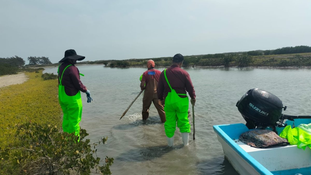 Aldama, Tamaulipas. – Con el objetivo de dar seguimiento y fortalecer el desarrollo de los proyectos de granjas de ostión en los municipios de Aldama y San Fernando, personal técnico de la Subsecretaría de Pesca y Acuacultura, encabezada por el subsecretario Jorge de Jesús Montagner Mendoza, realizó visitas de trabajo en la Barra de San Vicente y en el poblado de Carbonera Norte.