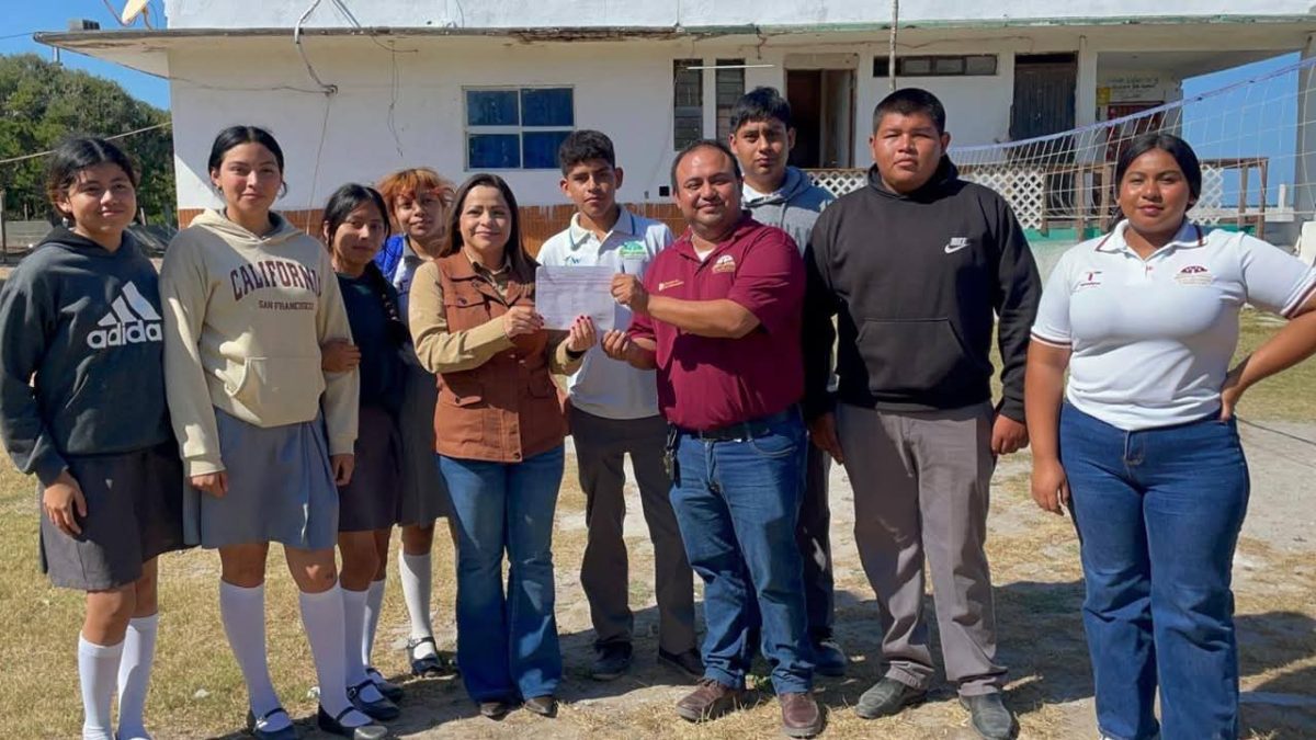 San Fernando, Tam.– Reafirmando su compromiso con la educación y el desarrollo integral de la juventud, la presidenta municipal, Lic. Verónica Adriana Aguirre de los Santos, brindó su respaldo al Telebachillerato Comunitario 025 del campo pesquero Punta de Piedra, contribuyendo a la participación de sus alumnos en los Encuentros Deportivos Regionales.